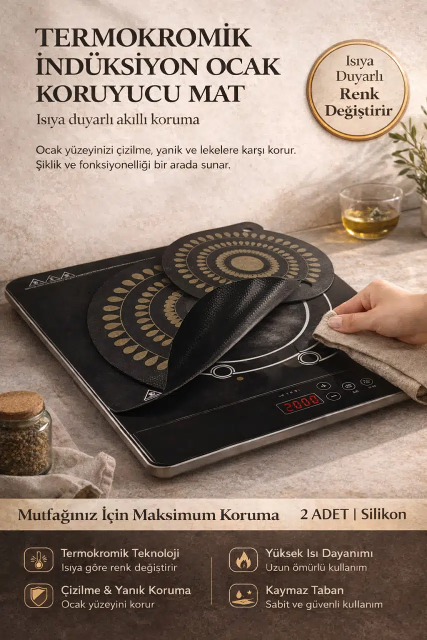Mutfağınızda maksimum koruma ve şıklığı bir arada sunan termokromik silikon indüksiyon ocak koruyucu, ocak yüzeyinizi çizilmelere, yanıklara ve lekelere karşı etkili şekilde korur.