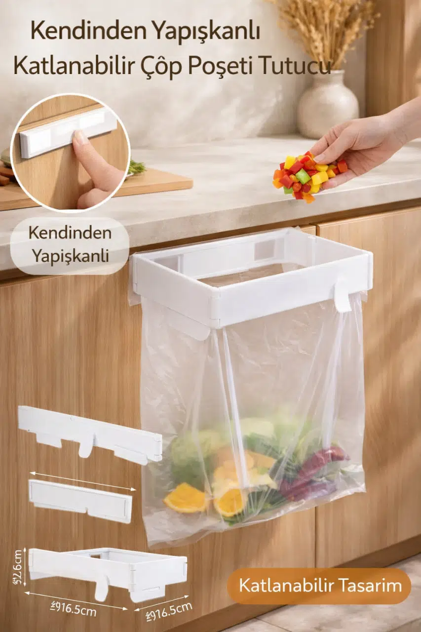 • 1 Adet Katlanabilir Çöp Poşeti Tutucu (Beyaz)