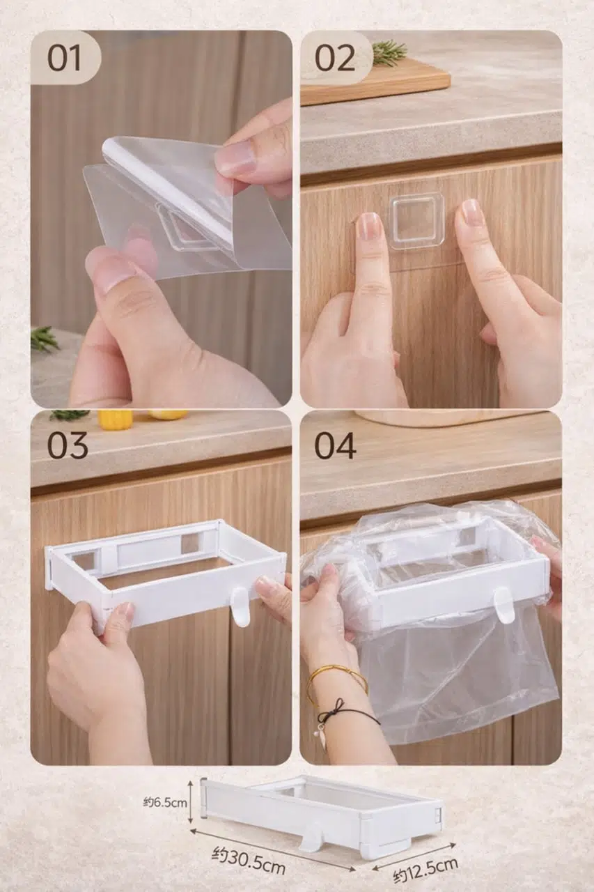 Mutfakta yemek hazırlarken oluşan atıkları anında ve zahmetsizce toplamak artık çok daha kolay! Dolap içi asılabilir çöp poşeti tutucu aparat, pratik kullanımı ve yer tasarrufu sağlayan tasarımı ile mutfağınıza düzen ve hijyen kazandırır.
