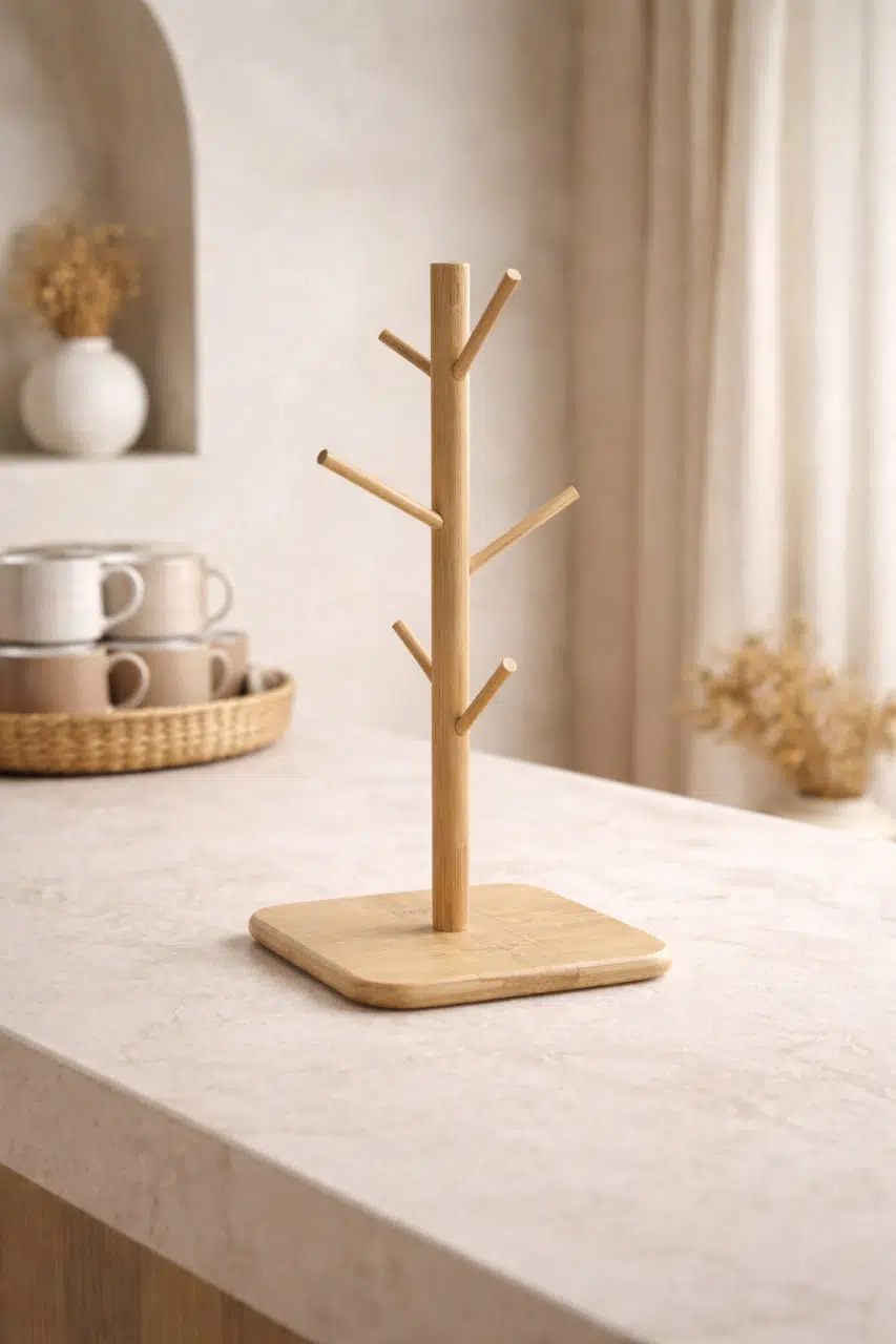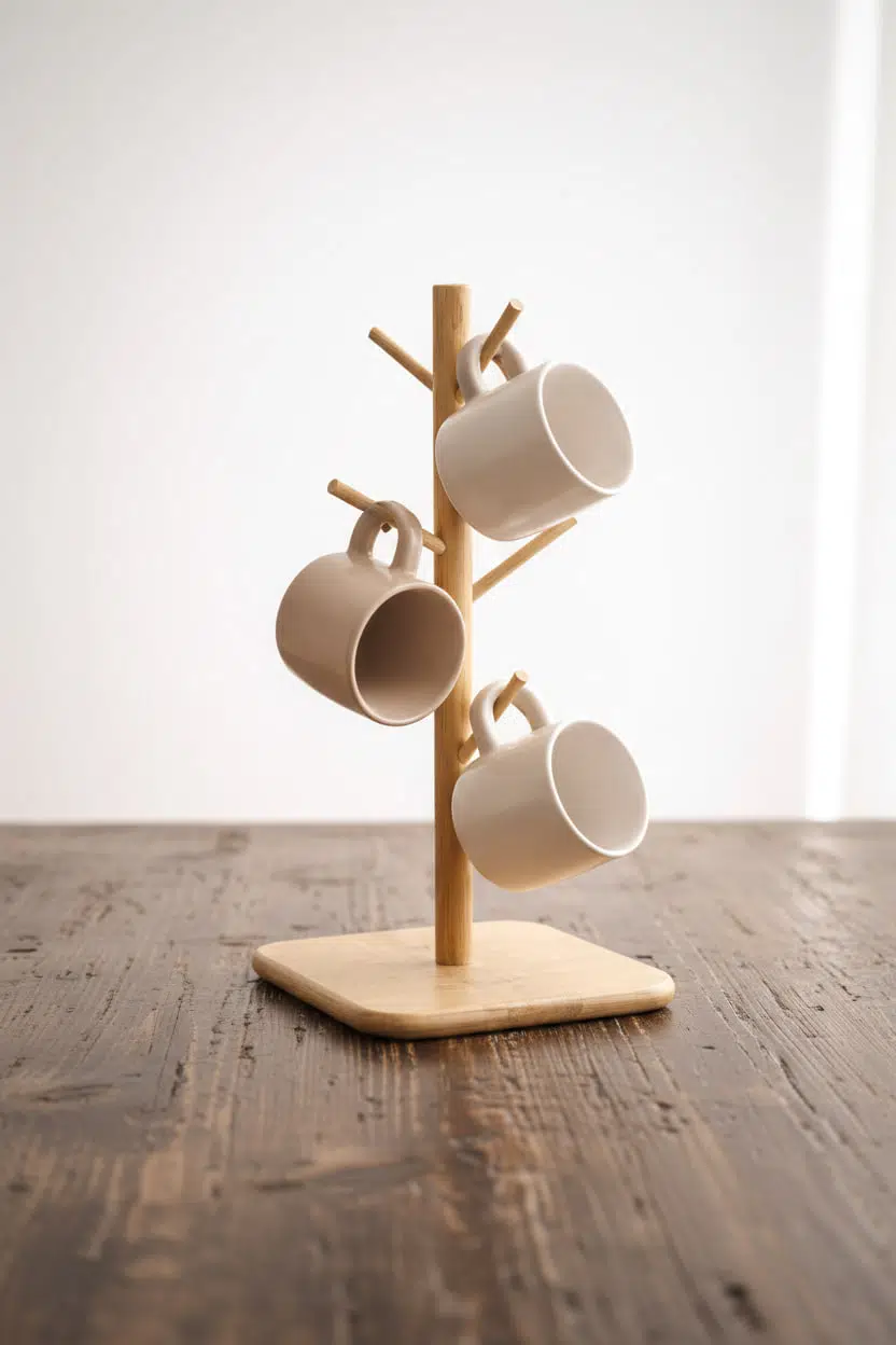 Doğal bambu malzemeden üretilmiş fincan askılığı standı, mutfağınızda hem düzen hem de şık bir görünüm sağlar.