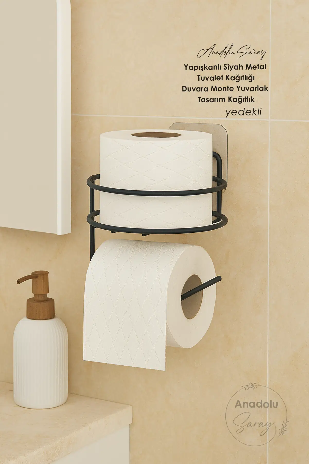 Bu şık ve modern tuvalet kâğıtlığı, banyonuzda hem estetik hem de pratik bir kullanım sunmak için tasarlanmıştır. Mat siyah kaplama sayesinde minimalist dekorlara mükemmel uyum sağlar ve uzun süre dayanıklılığını korur. Yapışkanlı güçlü arka yüzeyi sayesinde matkap gerektirmeden duvara kolayca monte edilir.