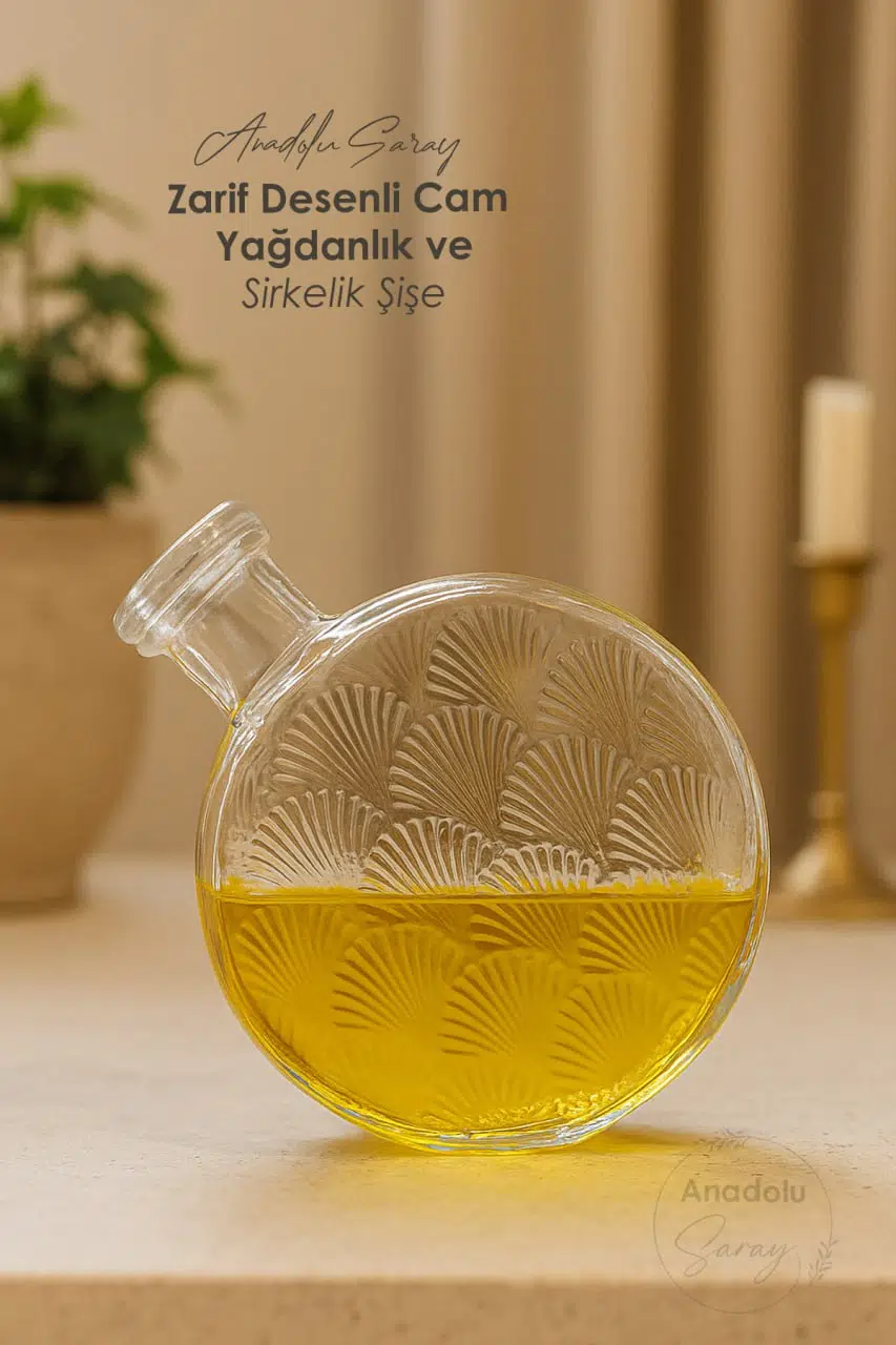Mutfak şıklığını zarafetle buluşturun! El işçiliği detaylarıyla öne çıkan bu dekoratif cam yağdanlık ve sirkelik, hem fonksiyonel hem estetik bir kullanım sunar. Şeffaf cam yapısı sayesinde içeriği kolayca görmenizi sağlar, zeytinyağı, sirke veya özel soslarınız için ideal bir saklama ve sunum aracıdır.